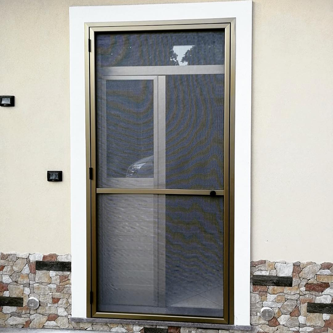 - Optional : rete in alluminio obrunita, cerniera di ritorno, sopraluce fisso, doppio traverso.